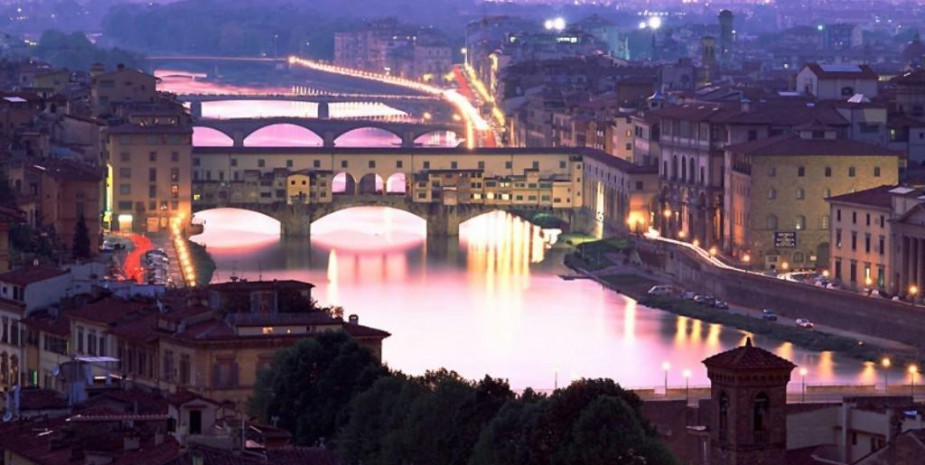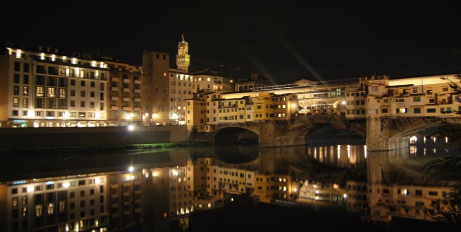 Il fiume Arno, che passa in mezzo alla città, occupa un posto nella storia fiorentina alla pari con la gente che ci vive. Storicamente, la popolazione locale ha una relazione di odio-amore con l’Arno, il quale ha portato alternativamente i vantaggi del commercio, e i disastri delle alluvioni. Tra i ponti che lo attraversano il Ponte Vecchio è unico al mondo, con le caratteristiche botteghe di gioiellieri nelle casette costruite su di esso. Attraversato dal nobile Corridoio vasariano, è l’unico ponte della città ad essere passato indenne attraverso la seconda guerra mondiale.