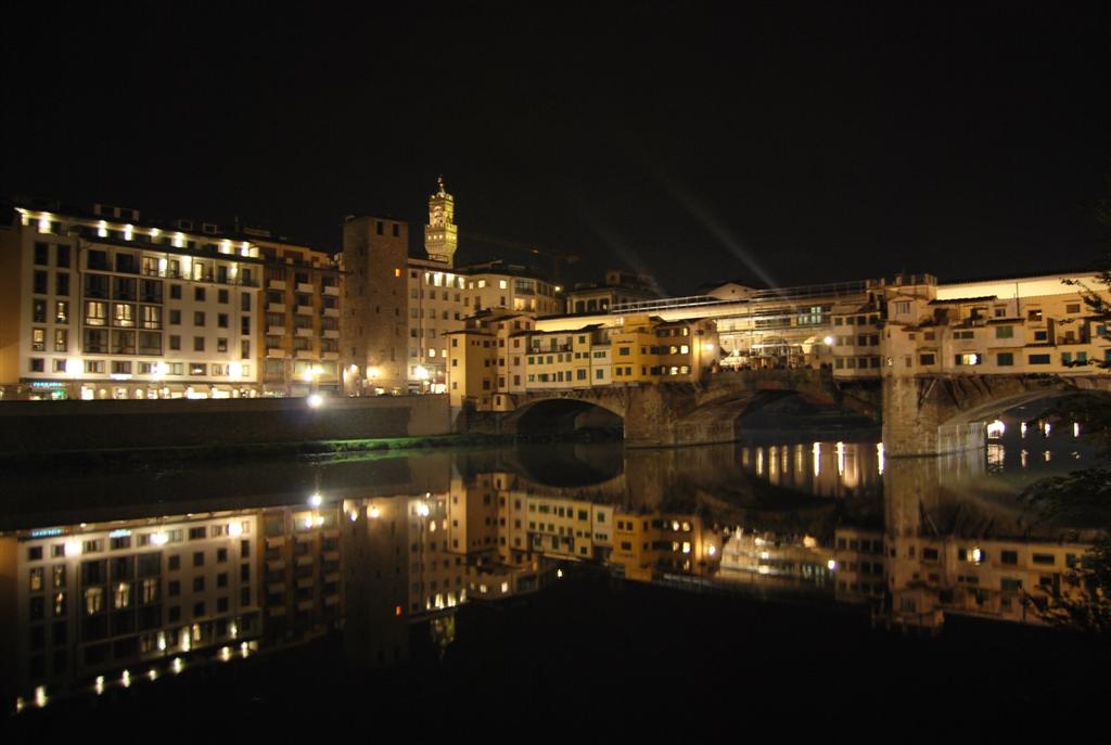 Il fiume Arno, che passa in mezzo alla città, occupa un posto nella storia fiorentina alla pari con la gente che ci vive. Storicamente, la popolazione locale ha una relazione di odio-amore con l’Arno, il quale ha portato alternativamente i vantaggi del commercio, e i disastri delle alluvioni. Tra i ponti che lo attraversano il Ponte Vecchio è unico al mondo, con le caratteristiche botteghe di gioiellieri nelle casette costruite su di esso. Attraversato dal nobile Corridoio vasariano, è l’unico ponte della città ad essere passato indenne attraverso la seconda guerra mondiale.